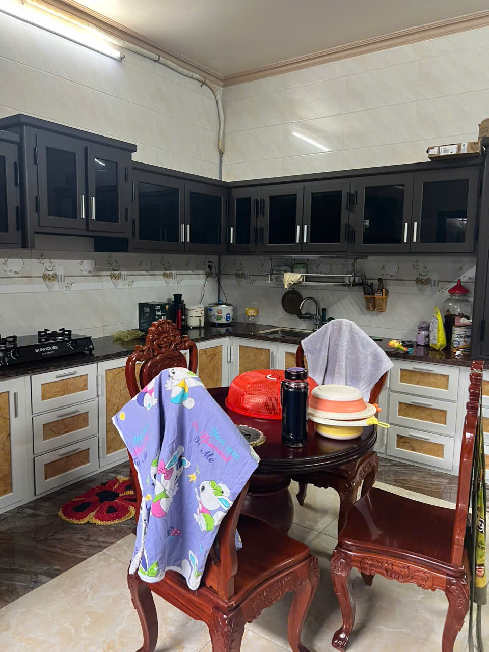 Nhà gạch cao cấp giáng tới Trần nhà sạch sẽ . Sử dụng cửa nhôm cao cấp. Có tặng nội thất như tủ bếp nhôm. Máy lạnh v.v.v