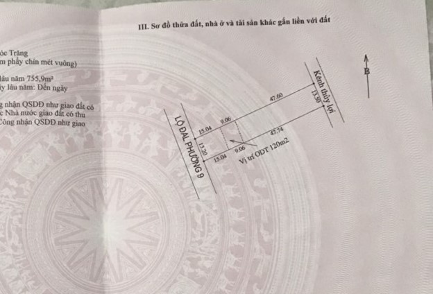 Đất nền 13×72 mặt tiền lộ dal phường 9, gần cầu Bắc Tà Ky