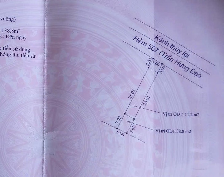 Đất nền 5×38 Hẻm 567 Trần Hưng Đạo TPST